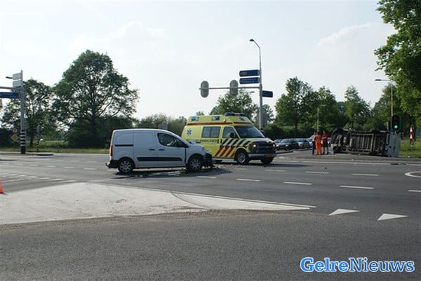 VARSSEVELD – Bij een aanrijding op de N18 met de kruising Zelhemseweg in Varsseveld is dinsdagmiddag een bestelbusje gekanteld. Niemand raakte gewond.