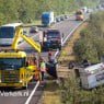 Auto met caravan over de kop op A50