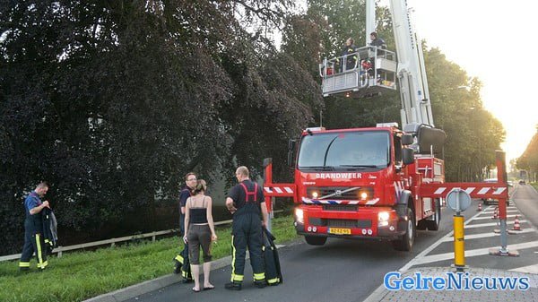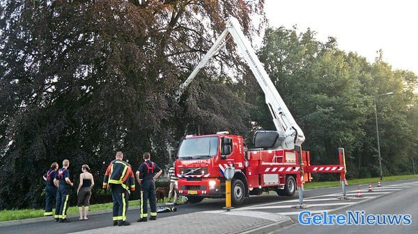 Een buurt bewoner waarschuwde kort voor negen uur de brandweer. In een grote berk achter het uitvaartcentrum hing een tak los. De brandweer zette maarliefst 8 brandweermannen, een bluswagen en een hoogwerker in. Met behulp van de hoogwerker kon een touw aan de tak worden geknoopt waarna de tak met vereende krachten naar beneden werd getrokken. Vanwege de werkzaamheden van de brandweer was de rijbaan richting Lochem tijdelijk afgesloten.