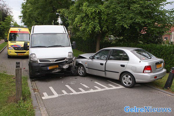 De aanrijding gebeurde kort na 6 uur. De automobilist uit Warnsveld kwam net voorbij de kruising met de Rhienderlinklaan frontaal in botsing met een tegemoetkomende bestelbus. De automobilist werd voor controle naar het ziekenhuis overgebracht. De 20-jarige bestuurder uit Ede van de bestelbus kwam met de schrik vrij. Beiden voertuigen raakten dusdanig beschadigd dat ze moesten worden afgesleept.