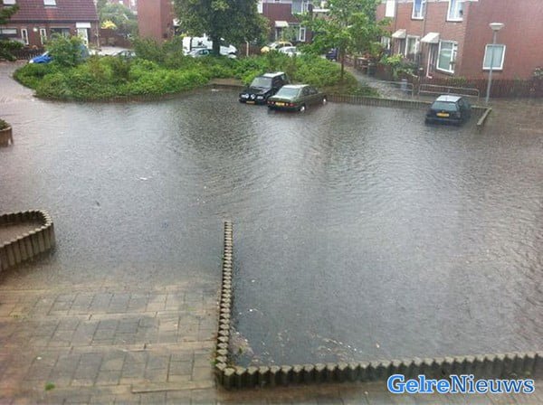 De riolering kon het vele regenwater niet meer verwerken. Door de waterdruk in het riool kwamen her en der putdeksels omhoog. Diverse straten kwamen blank te staan.