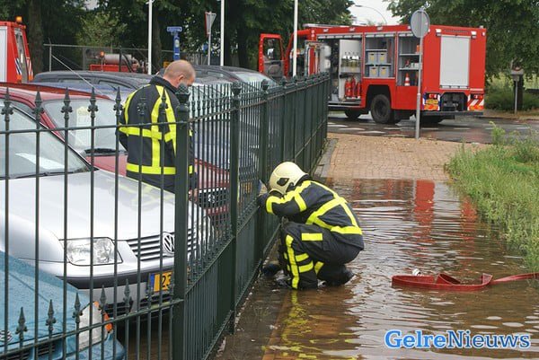 De brandweer sprak van extreem weer en moest verschillende keren uitrukken om water weg te pompen.
