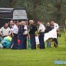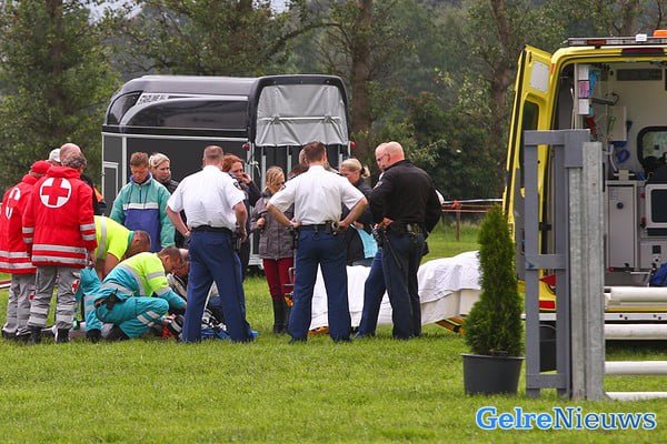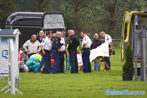 Hulpdiensten werden rond kwart voor drie gewaarschuwd. De pony was tijdens de wedstrijd gestruikeld waardoor het dier en de ruiter ten val kwamen. Mensen van het Rode Kruis boden direct eerst hulp. Op het eerste oog zag het er ernstig uit. Maar na de komst van het ambulancepersoneel bleken de verwondingen mee te vallen. Een gewaarschuwde traumahelikopter kon onderweg terugkeren. De ruiter werd per ambulance voor controle naar het ziekenhuis gebracht.