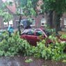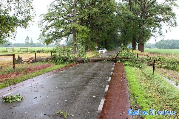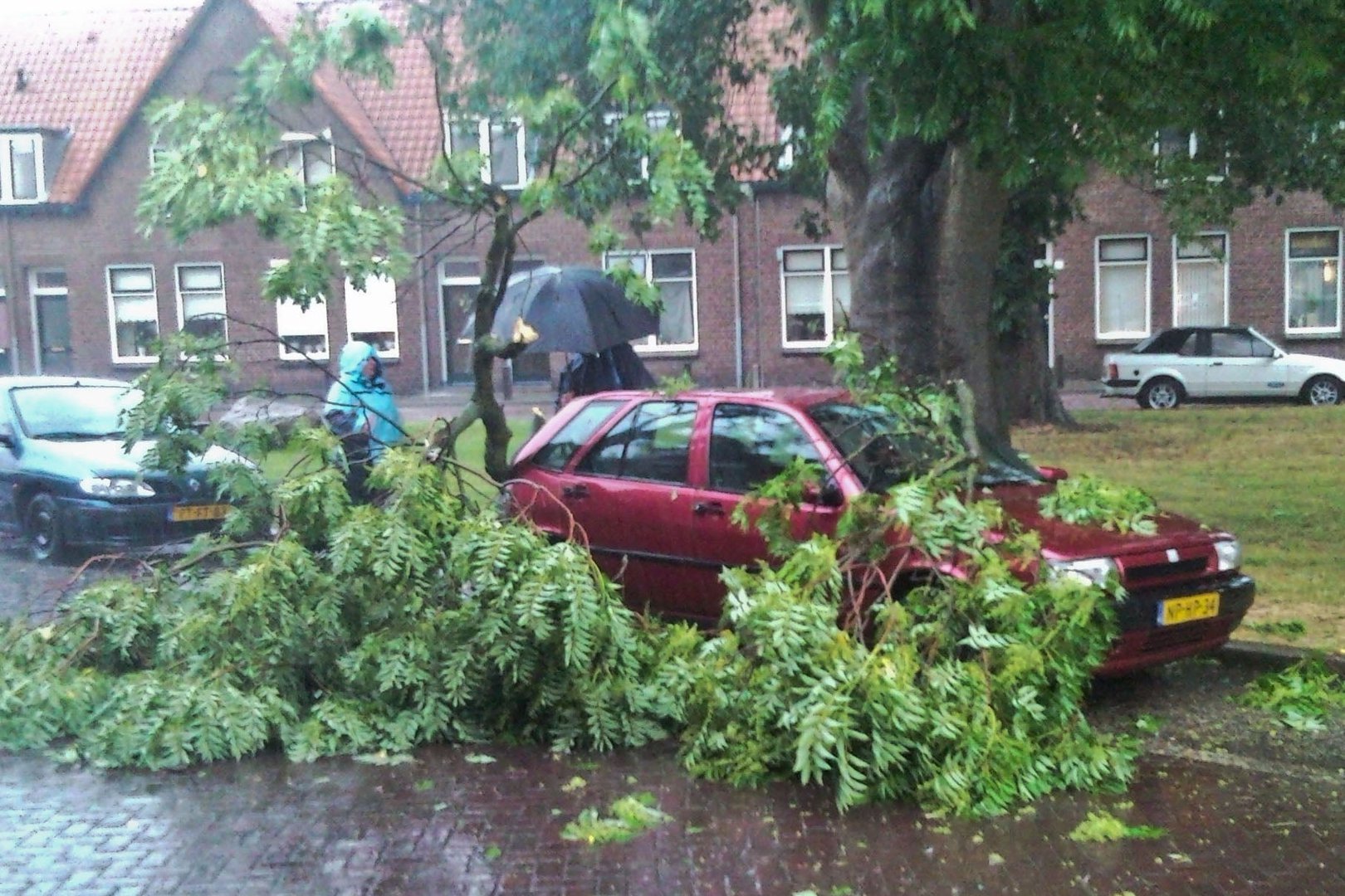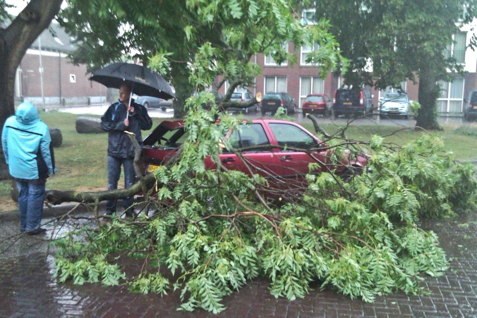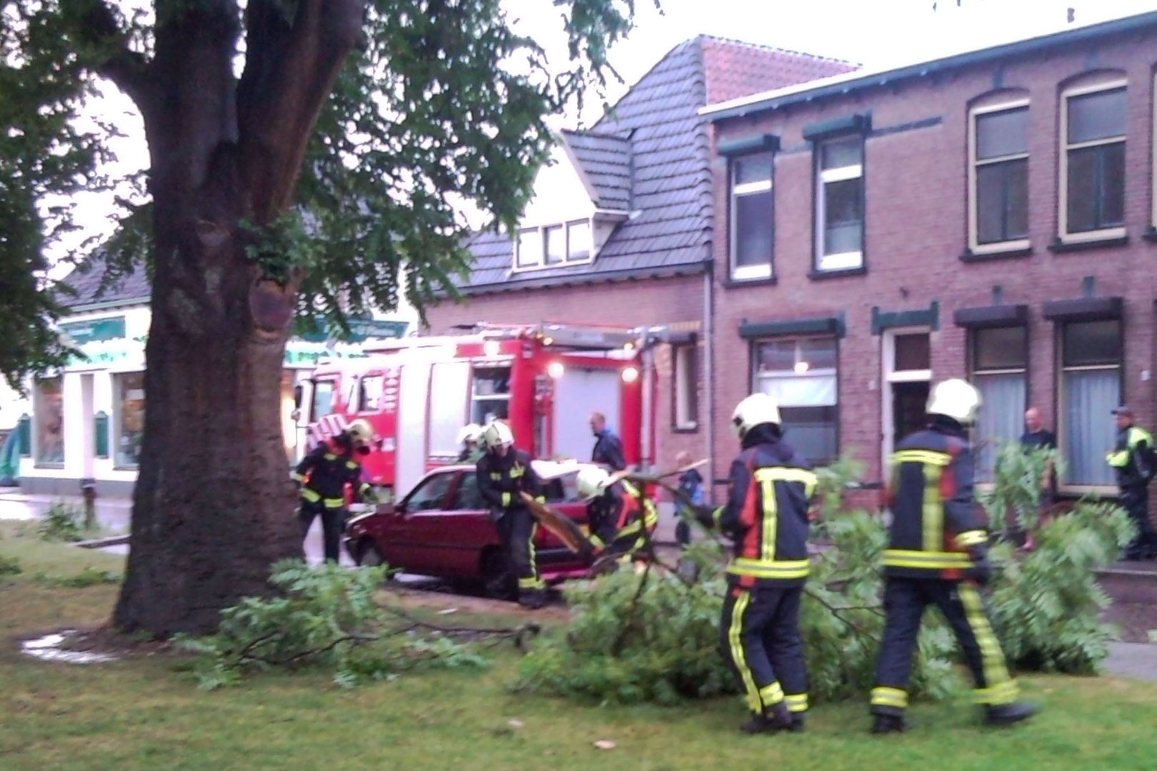 De harde windstoten die met de onweersbuien gepaard gingen deden enkele takken afbreken. Aan het Lunetteplein in Zutphen belandde een tak bovenop een geparkeerde auto. En aan de Dotherdijk in Eefde werd de weg versperd door een omgewaaide boom.
