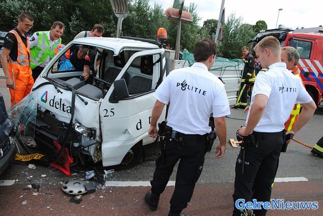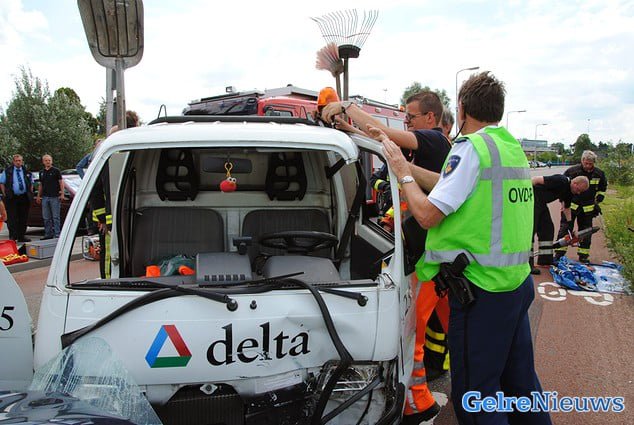 Het ongeval gebeurde rond 13.45 uur. Door nog onbekende oorzaak kwam de bestuurder van het busje frontaal in botsing met een automobilist. Het busje raakte door het ongeval zwaar beschadigd, waardoor de bestuurder bekneld kwam te zitten. Hulpdiensten hebben hem uit zijn benarde positie bevrijd. De man is met onbekende verwondingen met spoed per ambulance naar het ziekenhuis gebracht. De automobilist kwam met de schrik vrij.