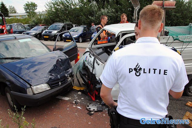 De politie doet onderzoek naar de toedracht van het ongeval. Beide auto’s moesten zwaar beschadigd worden afgesleept.