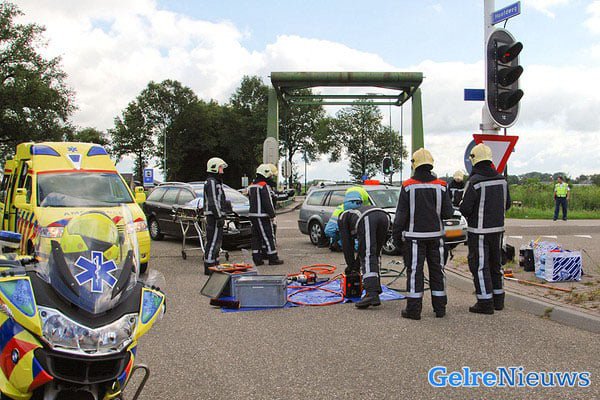 Het ongeval gebeurde kort na half twaalf. De vrouw zat als passagier in een auto die in botsing kwam met een andere auto. De vrouw raakte gewond en moest door de gewaarschuwde hulpdiensten uit de auto worden gehaald. Het slachtoffer is met onbekende verwondingen per ambulance naar het ziekenhuis gebracht. Voor zo ver bekend kwamen beide bestuurders met de schrik vrij.