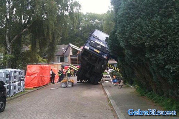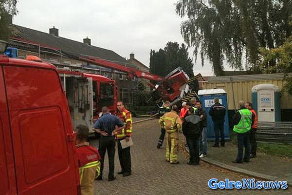 Door nog onbekende oorzaak is één van de stempels (steunen) van de kraan afgebroken, waarna het voertuig kantelde en de uitgeschoven kraan op en over het dak sloeg. Hierbij kwam één van de mannen die op het dak stond om het leven. De ander raakte niet gewond.