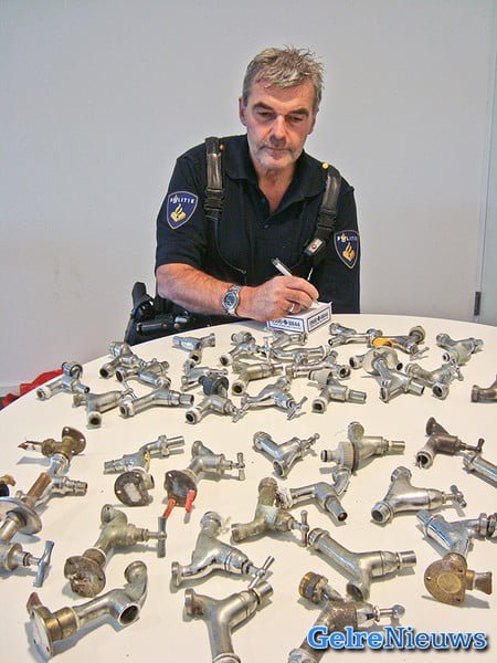 De politie startte direct een onderzoek en kreeg al snel zicht op de vermoedelijke verdachte. Met hulp van personeel van een Apeldoorns recyclingbedrijf kon de verdachte dinsdag worden aangehouden toen hij probeerde de kranen in te leveren. Hij bleek uiteindelijk ruim 40 kranen te hebben gestolen.