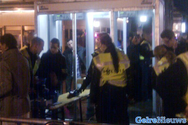 Al het uitgaanspubliek werd door detectiepoortjes geleid en bij wie de poortjes aansloegen, volgde een preventieve fouillering. Er werden vier personen beboet die een mes bij zich hadden. Twee personen zijn opgepakt voor wapenbezit.
