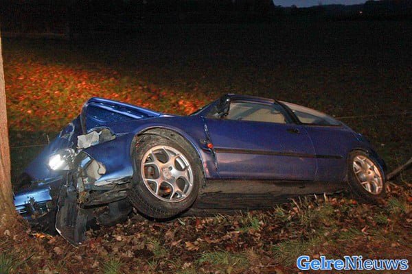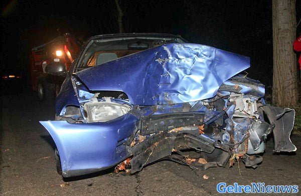 De auto raakte zwaar beschadigd en moest worden afgesleept.