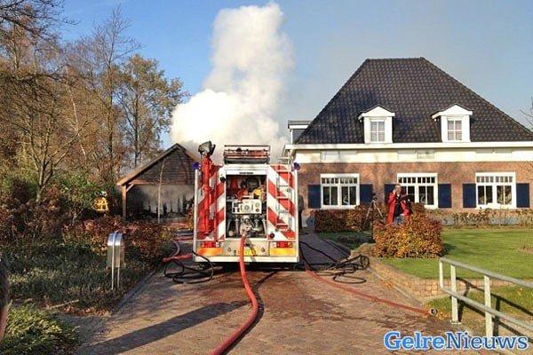 Een groep wielrenners ontdekte de brand kort na één uur. Het betrof een schuur van de firma Van Eldik Uitvaartzorg. De wielrenners wisten een onder de carport geparkeerde auto weg te duwen, waardoor deze gespaard bleef. De brandweer had het vuur snel onder controle. Er was sprake van grote rookontwikkeling.