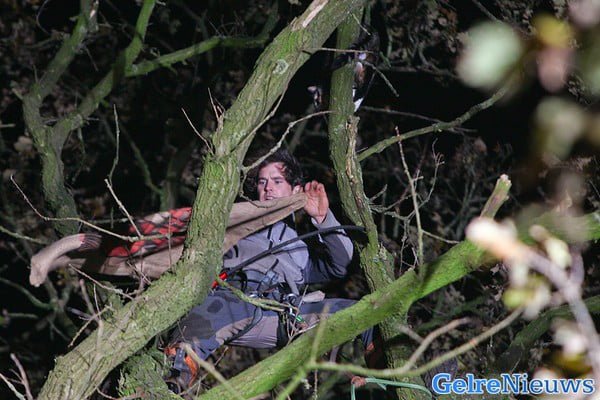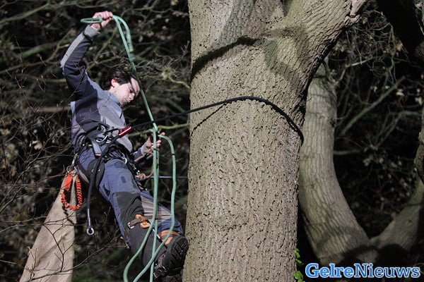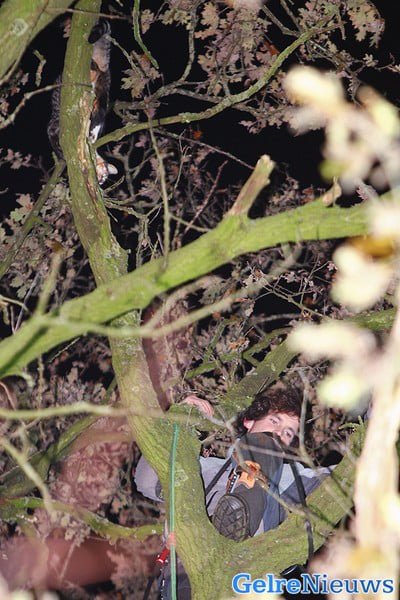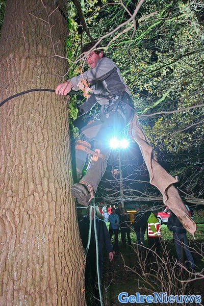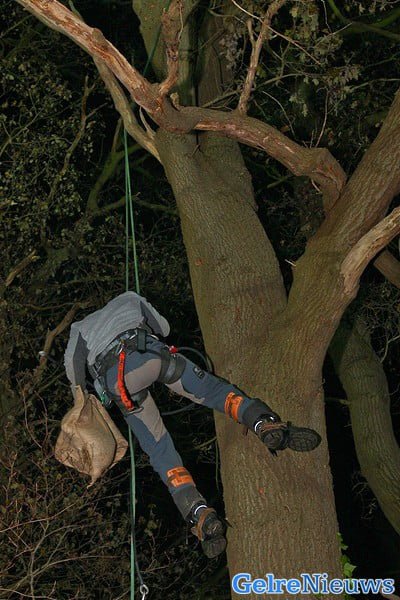 Dinsdagavond rond kwart voor acht startte de reddingsoperatie. Er werd een mobiele lichtmast van Brinkman en Niemeijer in het weiland opgesteld. Kat Bep zat zat nog steeds hoog in de boom. Boomverzorger Hans klom met behulp van klimijzers onder zijn schoenen voorzichtig de hoge boom in. Rond half negen, op zo’n 20 meter boven het maaiveld, kon hij Bep vastpakken en in een jutezak stoppen. De reis naar beneden ging heel wat sneller.