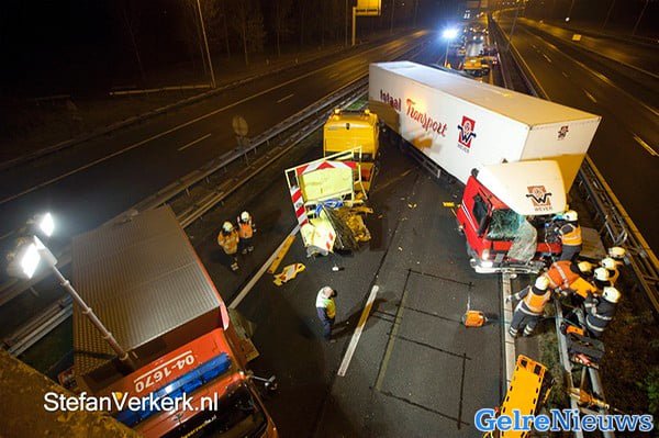 Het ongeval vond plaats rond 00.40 uur. De chauffeur, 50 jaar uit Schoonebeek, reed over de A28 bij Hattem in de richting van Amersfoort. Daar werden wegwerkzaamheden uitgevoerd, waardoor de rechter rijstrook was afgesloten. Op deze rijstrook stond een peilauto (barrier) om het verkeer de juiste baan te wijzen. Door nog onbekende oorzaak is de vrachtwagen op deze barrier ingereden en vervolgens tegen de vangrail tot stilstand gekomen.