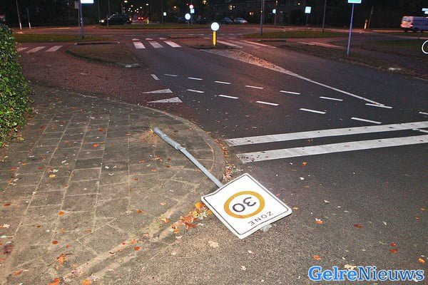 Het incident vond kort voor half vijf plaats vlakbij de rotonde van de Zutphenseweg. De oudere vrouw liep met haar hondje over het trottoir.  De automobiliste kwam van af de rotonde en reed door een nog onbekende oorzaak de stoep op. De automobiliste reed een verkeersbord omver.  Het verkeersbord kwam tegen de Lochemse die daardoor ten val kwam. Na het ongeval reed de automobiliste direct verder.