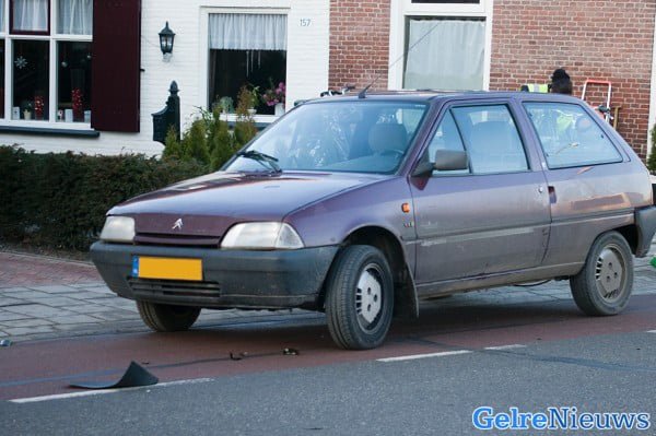 De auto raakte licht beschadigd, maar kon nog gewoon verder rijden.