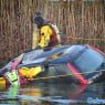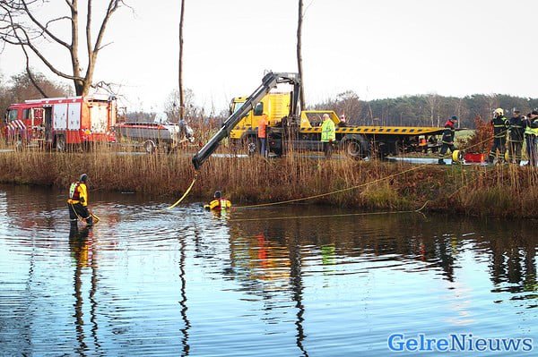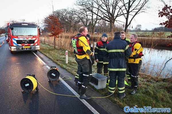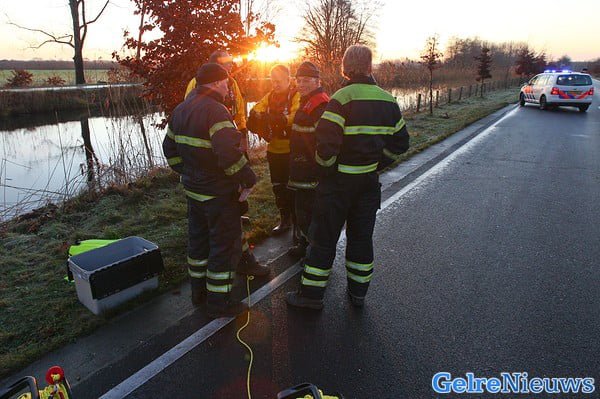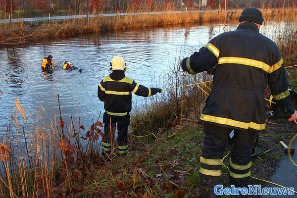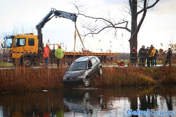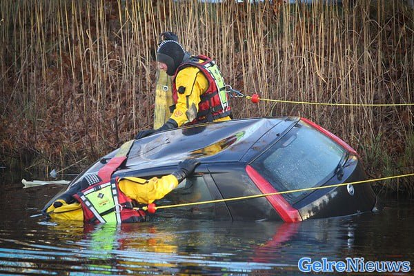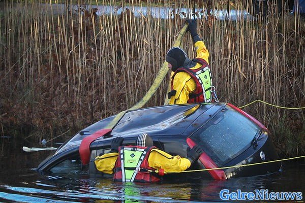 De vrouw is met een nat pak naar huis per ambulance gebracht. De auto is later met hulp van oppervlakteredders van de brandweer Brummen opgetakeld.