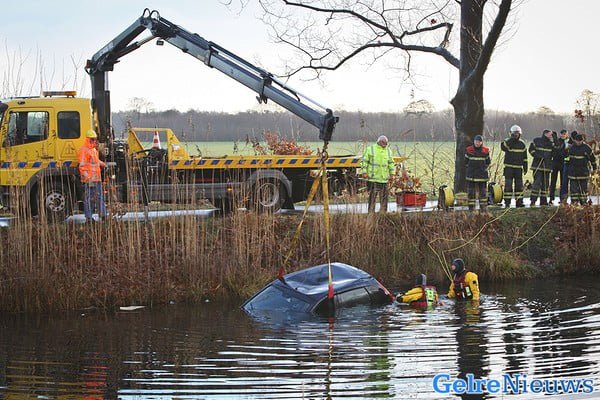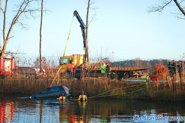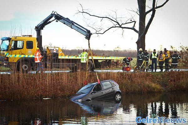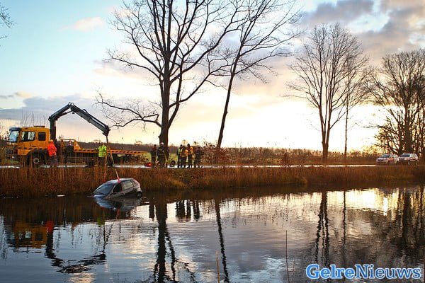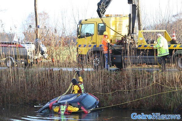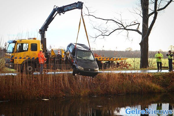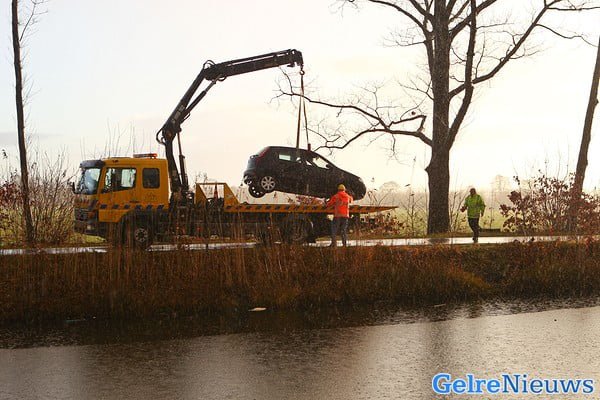 De vrouw kwam uit de richting van Eerbeek en had te laat in de gaten dat ze op een spiegelgladde weg reed. Haar auto raakte in een slip en reed het water van het Dierens-Apeldoorns kanaal in. De Klarenbeekse kon het voertuig, een zwarte Fiat, tijdig verhalen, voordat deze kopje onder ging.