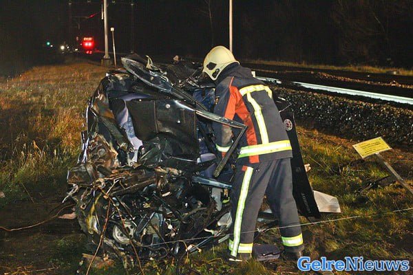 Het ongeluk gebeurde rond kwart over vijf. De bejaarde bestuurster was, zo verklaard ze, verblind geraakt door een tegenligger. De vrouw was op de overweg op het spoor beland. De auto stond klem. Een waarschuwing bij de NS kwam te laat. Voorbijgangers wisten de vrouw net op tijd uit de auto te halen. Een lege trein ramde de auto. Hulpdiensten werden gealarmeerd. De ravage was enorm. Van de auto was niets meer over. Brokstukken lagen overal langs het spoor.