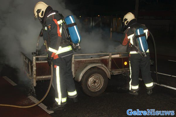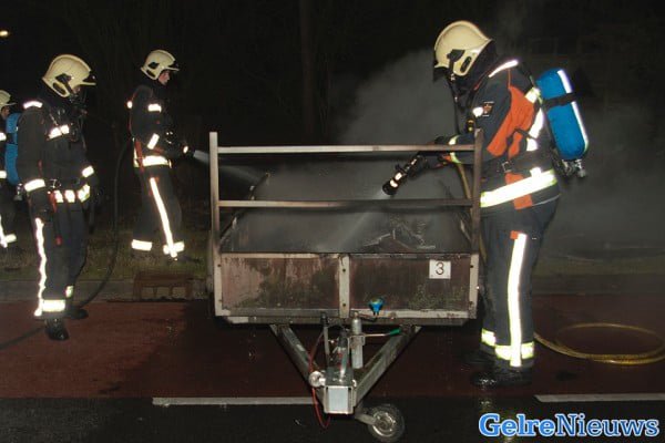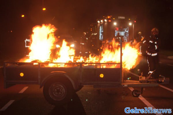 Op de Harenbergweg was een aanhangwagen midden op de weg geplaatst en in brand gestoken. Deze brandde volledig uit. De brandweer bluste het vuur.