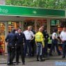 Drie gemaskerde mannen kwamen rond 16.30 uur de shop binnen. Het zouden getinte mannen zijn, die zwarte kleding aan hadden. Ze zouden te voet zijn gevlucht in de richting van de Naardenweg. Ze waren op de fiets gekomen.