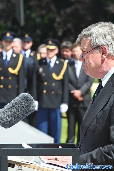 De Minister hield een korte toespraak, evenals de voorzitter van de Raad van Korpschefs de heer Kuijs, die vervolgens samen met een vertegenwoordiger van de nabestaanden een krans bij het monument legden.