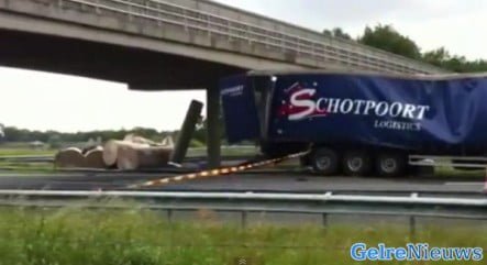Vrachtwagen Schotpoort ramt viaduct A50