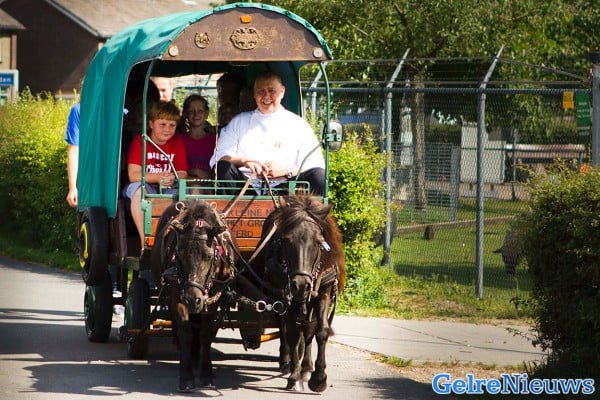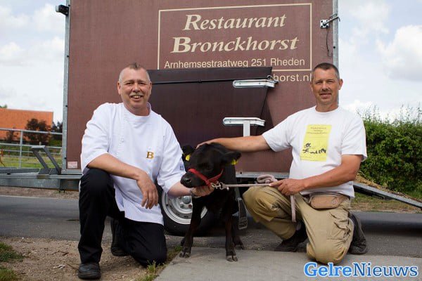 Ook kwam er ’s middags visite langs. De eigenaar van een plaatselijk restaurant dat 10 jaar bestaat kwam met een grote trailer voorrijden. Vanwege het jubileum kreeg de kinderboerderij een cadeau; uit de trailer kwam een mini-koe lopen.