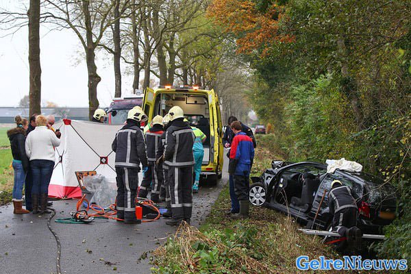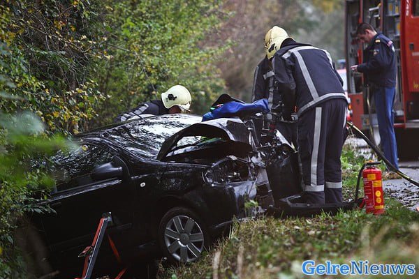 Een jongeman die even verder op buiten bij een boerenbedrijf aan het werk was hoorde de knal. Met een brandblusser ging hij razendsnel naar de rokende auto en schoot de vrouw te hulp. Hij kroop in de auto om de vrouw gerust te stellen en haar hoofd te stabiliseren.