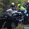 Gewaarschuwde hulpdiensten hebben de vrouw uit haar auto bevrijd. Het slachtoffer werd met onbekende verwondingen per ambulance naar het ziekenhuis gebracht.