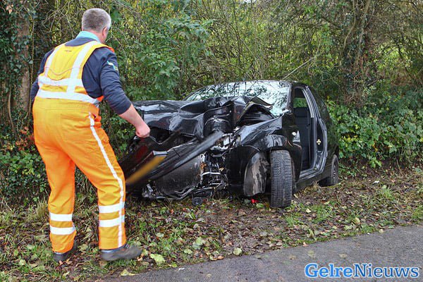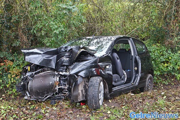 Haar auto raakte zwaar beschadigd en moest worden afgesleept.