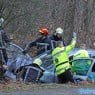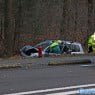 Het echtpaar is met botbreuken en kneuzingen overgebracht naar het ziekenhuis. De auto is door een bergingsbedrijf geborgen.