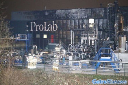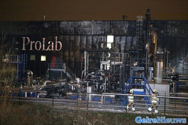 De brand ontstond even na 17.00 uur na een explosie bij het bedrijf Prolab, een specialistisch laboratorium op het gebied van brandstoffen. Volgens de brandweer vond de explosie buiten het gebouw op het bedrijfsterrein plaats in een testopstelling. De vlammen sloegen meters hoog in de lucht  en waren in de wijde omtrek te zien. Daarnaast kwam er ook veel zwarte rook vrij.