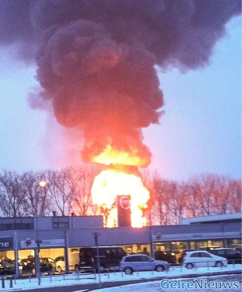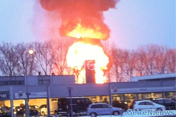 De brandweer rukte met groot materieel uit. De omgeving van de brand was lange tijd afgezet vanwege explosiegevaar.