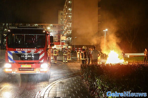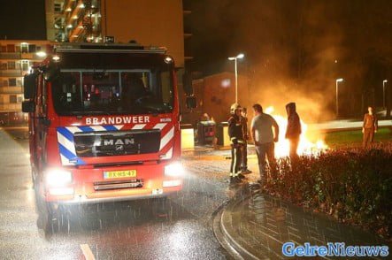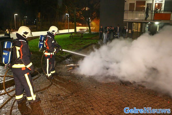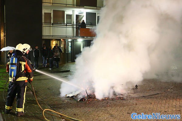 De spuitgasten kregen kort voor 2 uur een melding van een containerbrand. Ter plaatse bleek dat het om een vreugdevuur ging. Gezien de omvang en de plaats van het vuur besloot de brandweer dat het vuur gedoofd moest worden. Tot ongenoegen van enkele flatbewoners werd het vuur geblust.