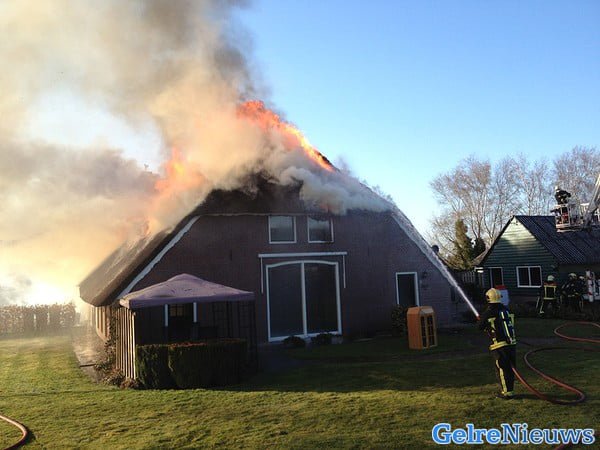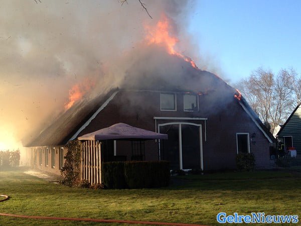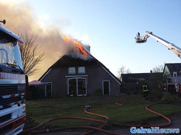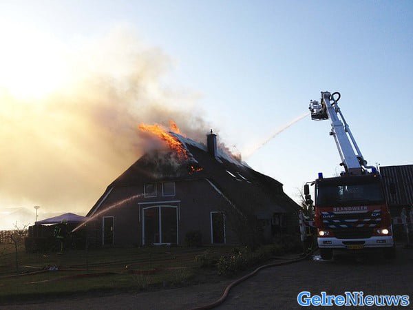Uitslaande brand in rietgedekte woonboerderij