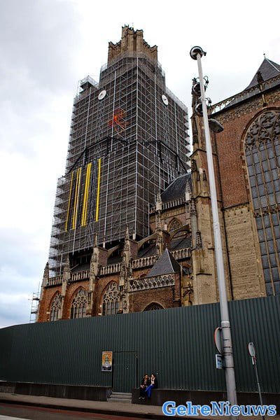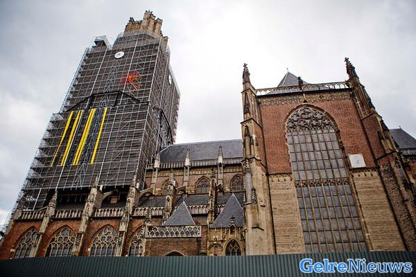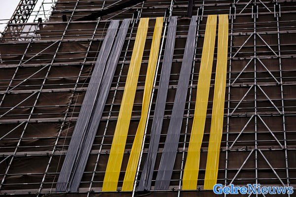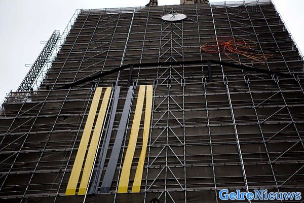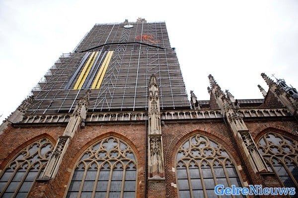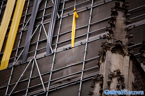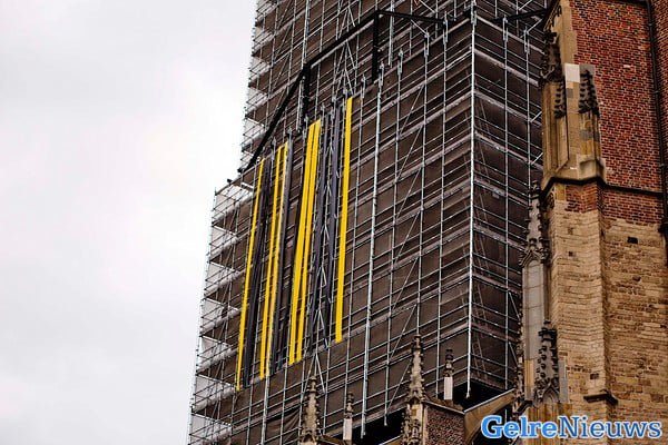 ARNHEM – Sinds vrijdagavond is de Eusebiustoren in Arnhem geel-zwart gekleurd. Supportersvereniging Vitesse ging met tien man vrijwilligers aan de slag om de kerktoren in te pakken in geel-zwart lint.