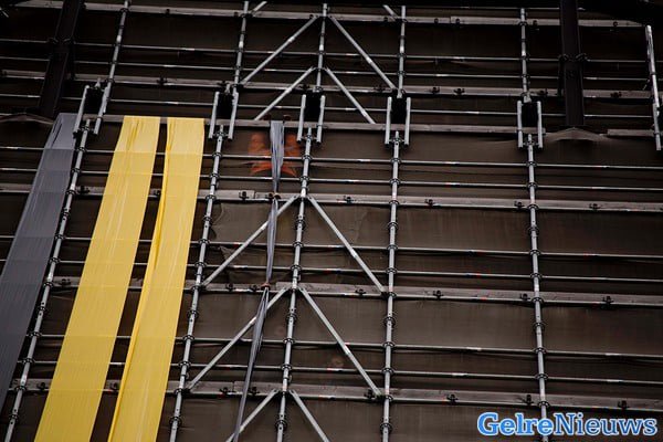 In eerste instantie was het de bedoeling de hele zuidkant die richting het GelreDome straalt met linten te bedekken, maar in verband met de harde wind lukte dat niet. Daarom is nu middelste helft van de zuidkant bedekt op 93 meter hoogte.