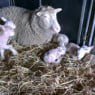 Twee lammetjes zijn bij een andere ooi gezet, omdat de moeder geen melk genoeg heeft om zes lammetjes te voeden. Zo’n adoptiemoeder levert over het algemeen geen problemen op.