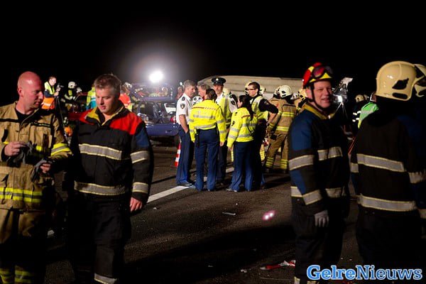 Alle elf slachtoffers zijn vervoerd naar ziekenhuizen in de regio. Bij het ongeval was een Deense auto betrokken met vijf Denen, ook zij zijn vervoerd naar het ziekenhuis. De traumahelikopter, lifliner 3, was ter plaatse met een team om de hulpverlening te ondersteunen. De ambulancedienst heeft vijf ambulances ingezet. Politie en Rijkswaterstaat (RWS) hebben de rijbaan afgesloten voor alle verkeer. Er was een omleidingsroute ingesteld. Dit i.v.m. reparatie van wegdek en vangrail. De brandweer heeft opgeschaald naar Grip 1, dit betekent dat er multidisciplinair overleg was met alle hulpverleners die bij het incident ingezet werden. De brandweer was met zes voertuigen ter plaatse. De politie doet onderzoek naar de toedracht van het ongeval.