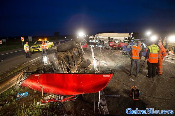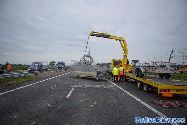 ANDELST – In de nacht van zaterdag op zondag heeft er op de A15 tussen Andelst en Dodewaard in de richting Rotterdam een ernstig ongeval plaatsgevonden. Bij het ongeval waren vier auto’s betrokken en een grote boot op een aanhanger.