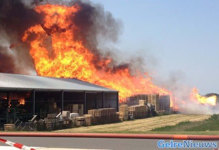 Het vuur, dat ruim honderd meter breed was en twintig meter hoog, was overgeslagen naar het naastgelegen pand. Vanwege de hitte en de rookontwikkeling was een groot gebied rondom het brandende gebouw afgezet, waaronder de N50.