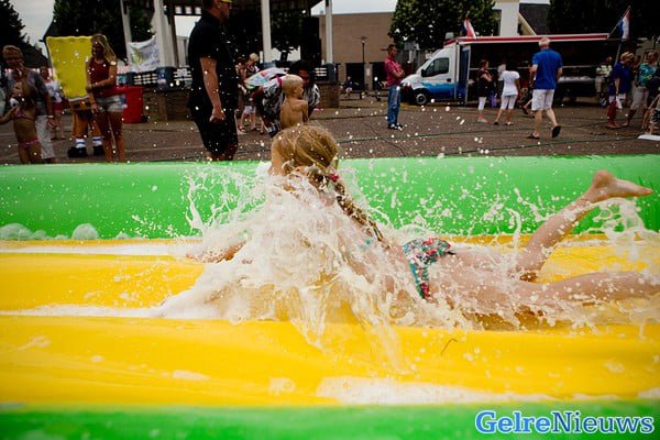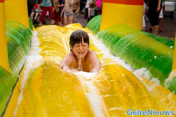 BRUMMEN – De eerste Waterdag op het Marktplein in Brummen was woensdag een groot succes. Mede door het prachtige weer kwamen honderden kinderen met hun ouders op het waterspektakel af.