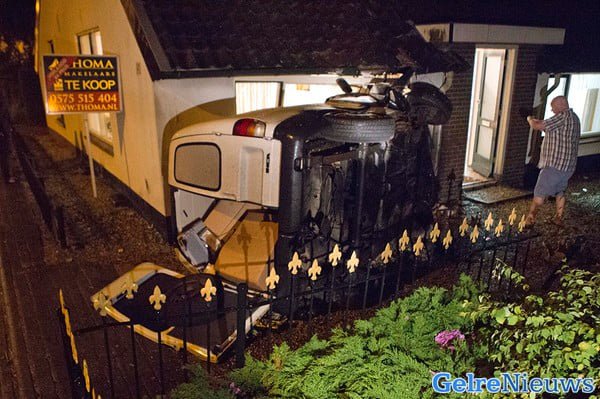 Het ongeluk gebeurde rond 23.20 uur. De automobilist reed met zijn bestelwagen richting Brummen totdat het mis ging. Hij verloor door nog onbekende oorzaak de macht over het stuur, sloeg over de kop, en ‘vloog’ dwars door een tuin. Uiteindelijk ramde de auto een huis waar die tot stilstand kwam. Niemand was in de woning aanwezig toen het gebeurde. De buitenmuur van de woning was door de harde klap naar binnen geslagen.