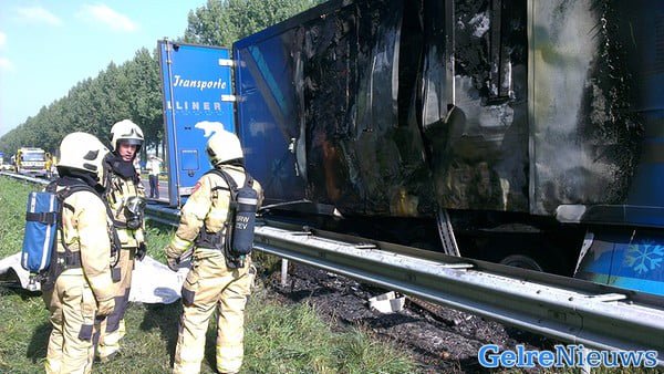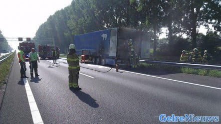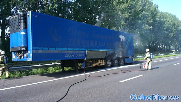 Vermoedelijk is het vuur ontstaan na een klapband. De brand zorgde voor een grote zwarte rookontwikkeling, die in de weide omgeving te zien was. Brandweerkorpsen uit de regio hebben het vuur onder controle gekregen. In de vrachtwagen zat ruim 21 ton champignons. Deze kunnen mogelijk weggegooid worden door de brand.