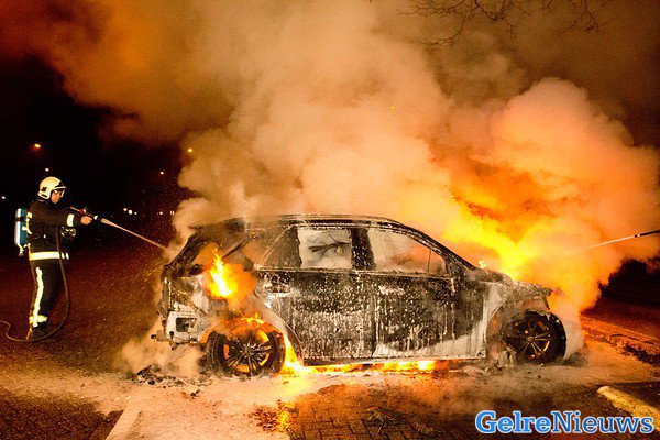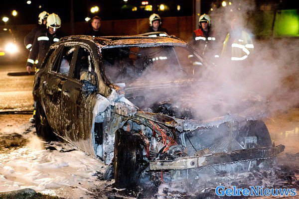Het is nog onbekend of het gaat om brandstichting. Het voertuig is geborgen.