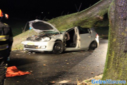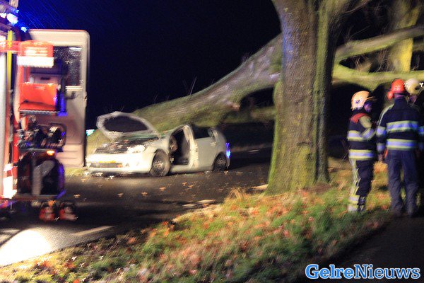 AALTEN – Op de Dinxperlosestraatweg in Aalten viel donderdagavond tijdens de storm een boom op een rijdende auto. De bestuurster kwam bekneld te zitten.