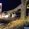 Boom valt tijdens storm op rijdende auto