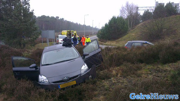 Het ongeluk gebeurde rond 11.55 uur. Door nog onduidelijke oorzaak miste hij de bocht naar de Apeldoornseweg en reed rechtdoor de berm in.