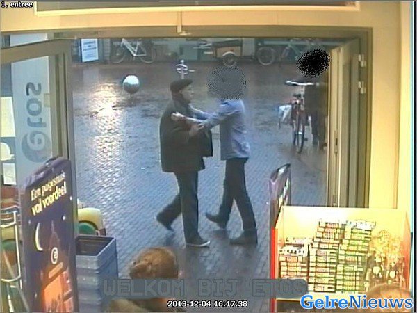 Omdat een medewerker de actie van dader 3 op de monitor heeft gevolgd, spreekt hij dader 3 buiten de winkel aan en wil hem aanhouden voor de diefstal. Dan verzet de man zich hevig. De medewerker weet nog hem wel de schoudertas afhandig te maken.